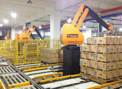 碼垛機器人主要包括直角坐標式機器人、關節式機器人和極坐標式機器人,每一臺碼垛機器人都有獨立的控制系統,適應于袋裝、罐裝、瓶裝等各種形狀的包裝物品碼垛、拆垛作業,不僅能搬運重物,且作業速度與質量遠遠高于人工,極大保證了作業精度。